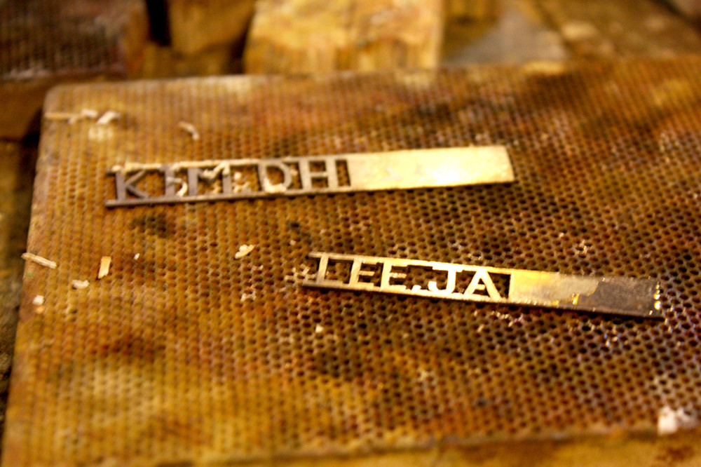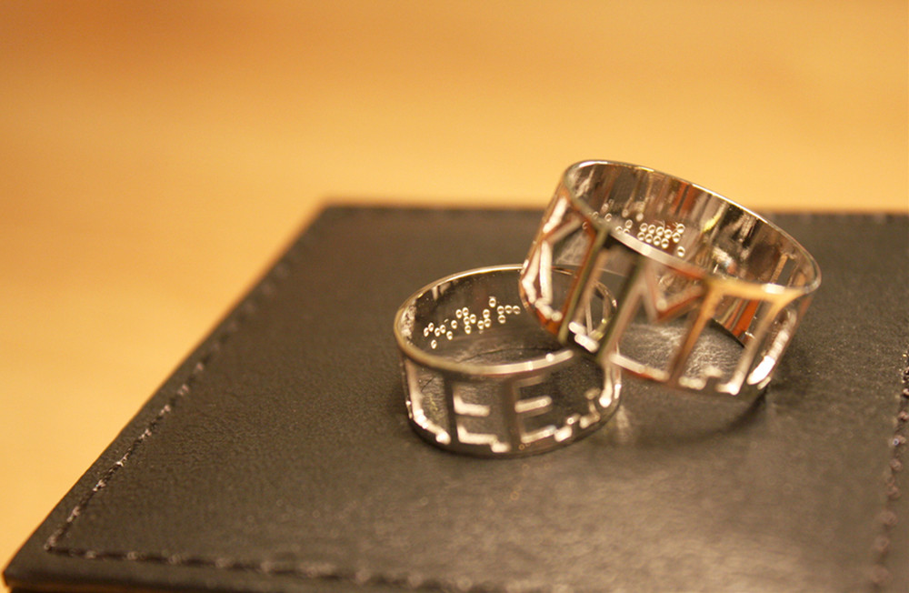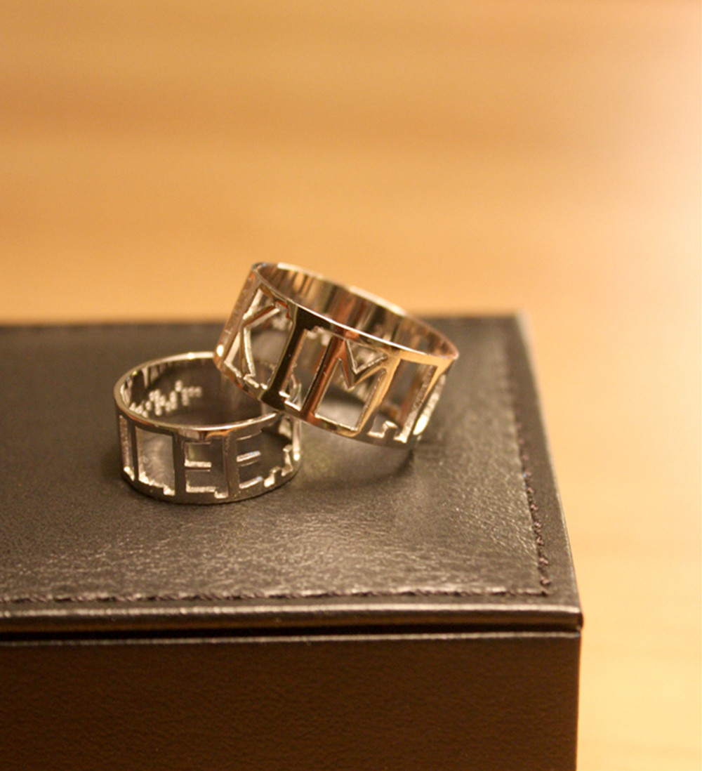 커플 이니셜반지에 안쪽 레이저 각인을 점자로 하였습니다.