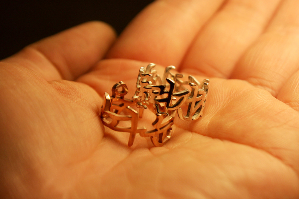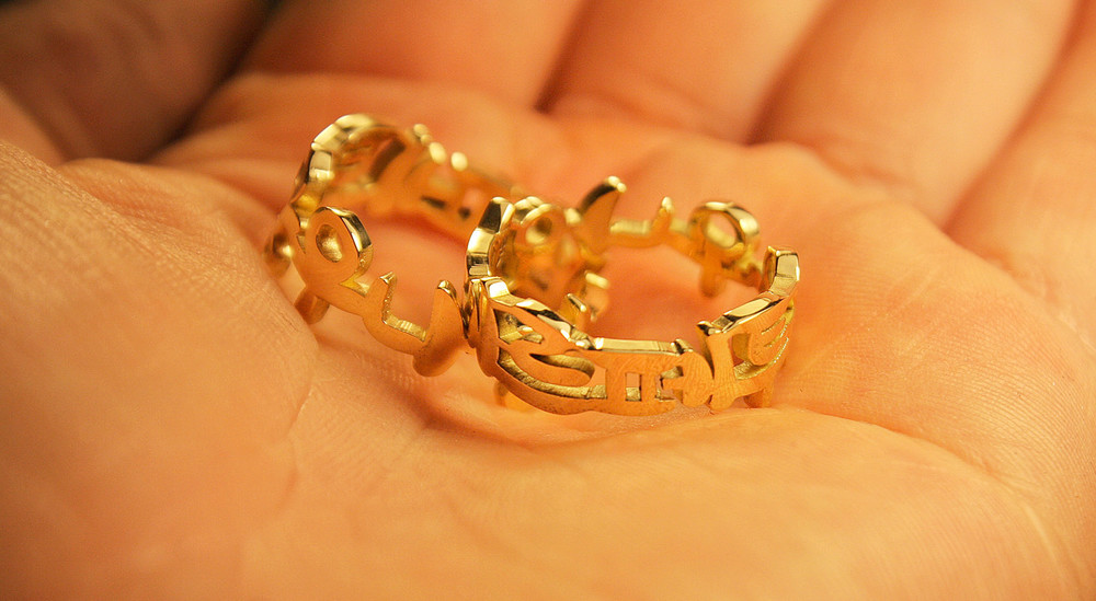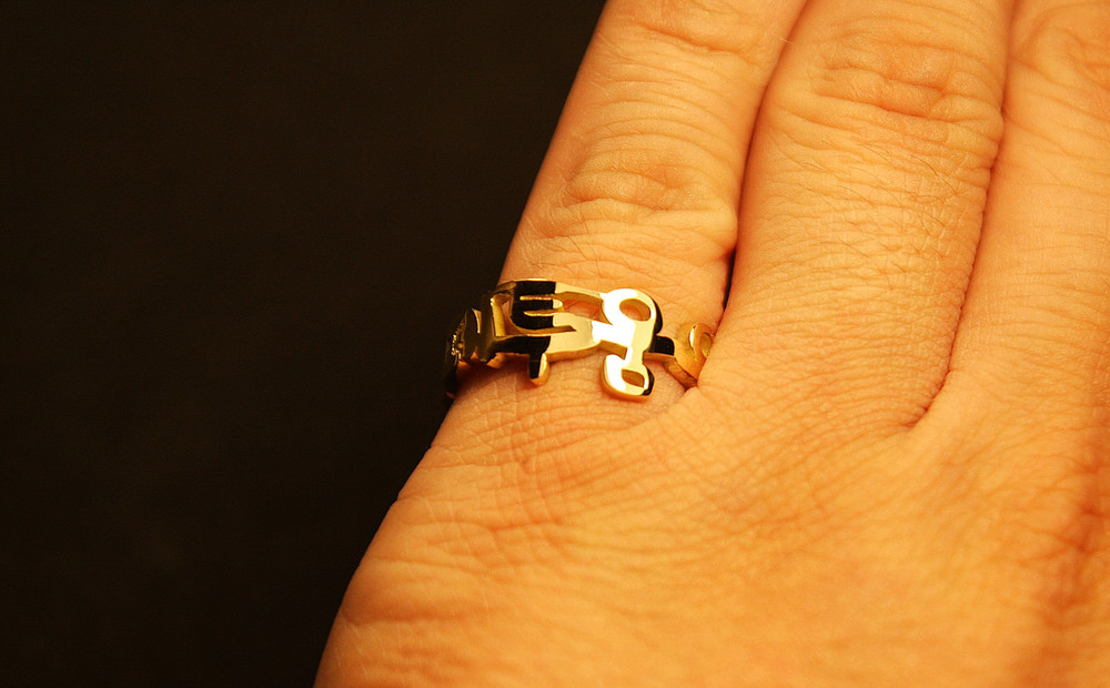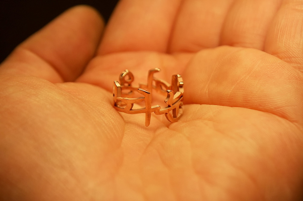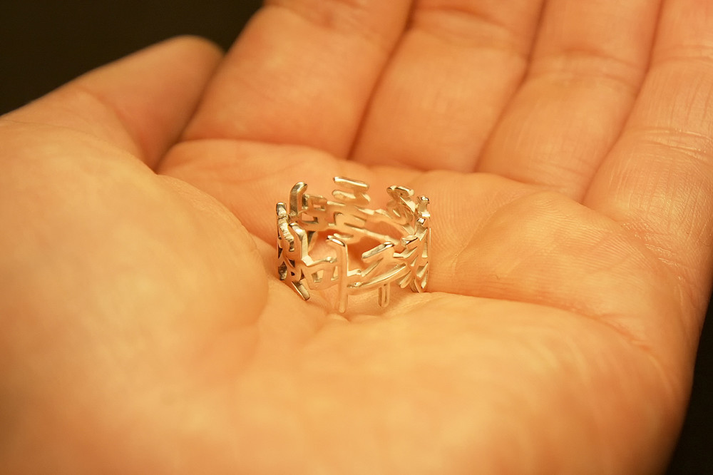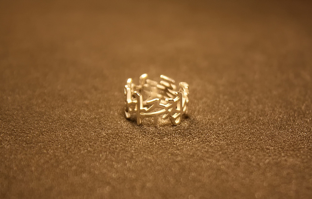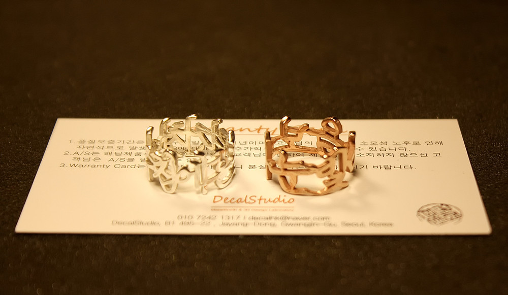 반지 전체가 한글로 둘러지는 한글반지입니다.