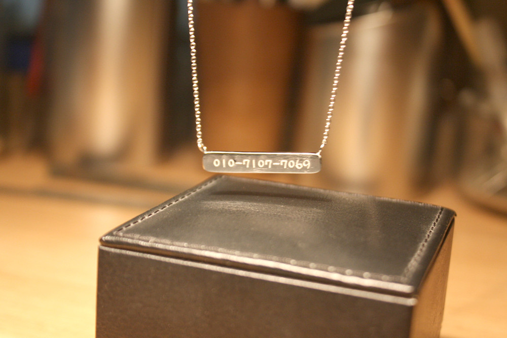 앞면은 아가이름 뒷면에는 보호자 연락처가 새겨집니다.
