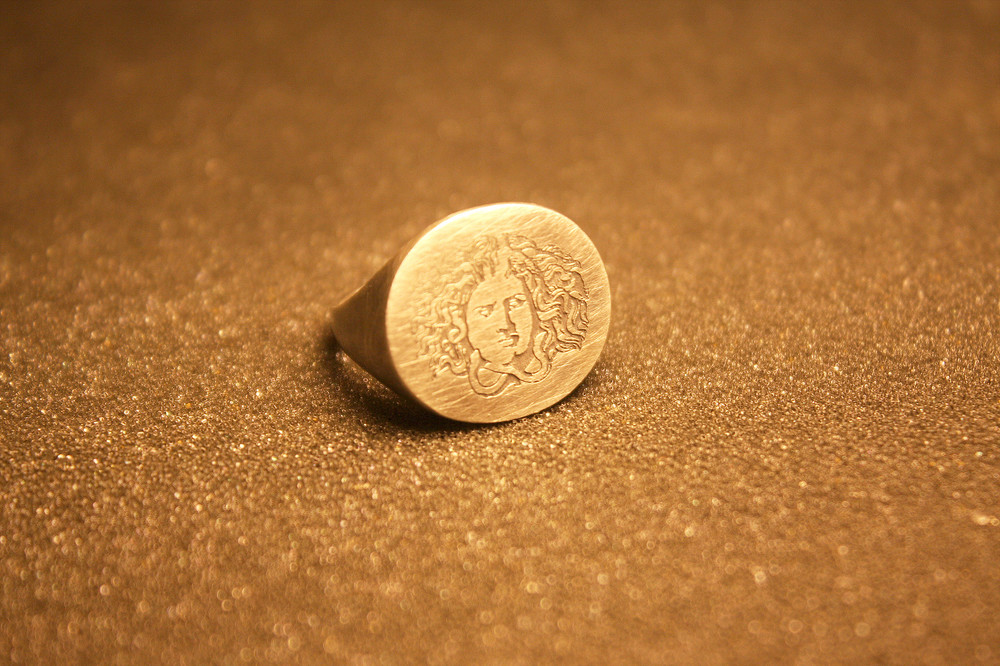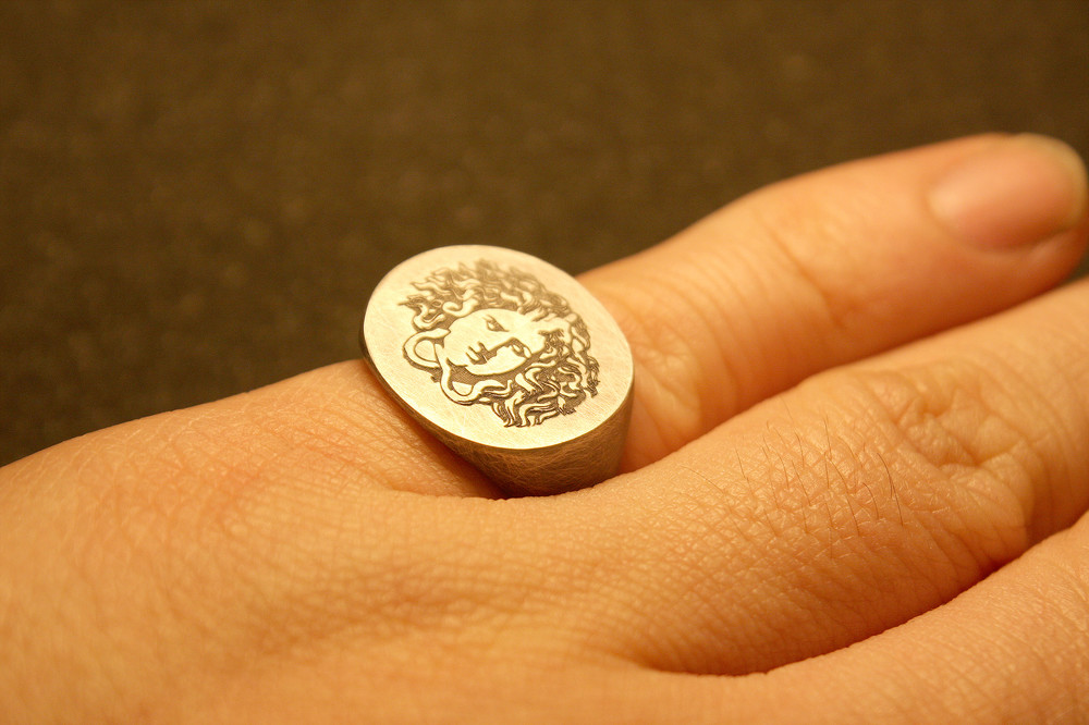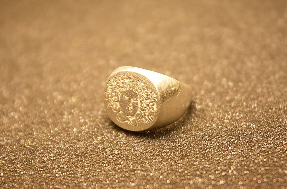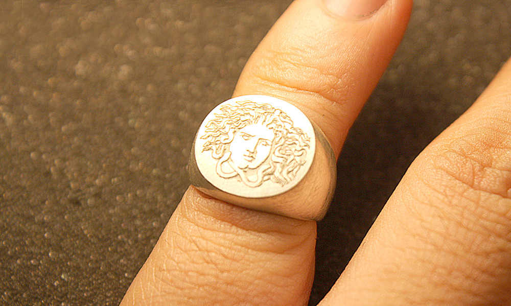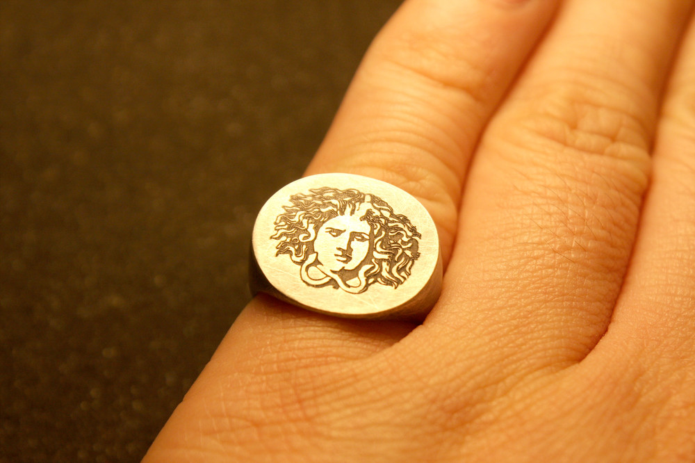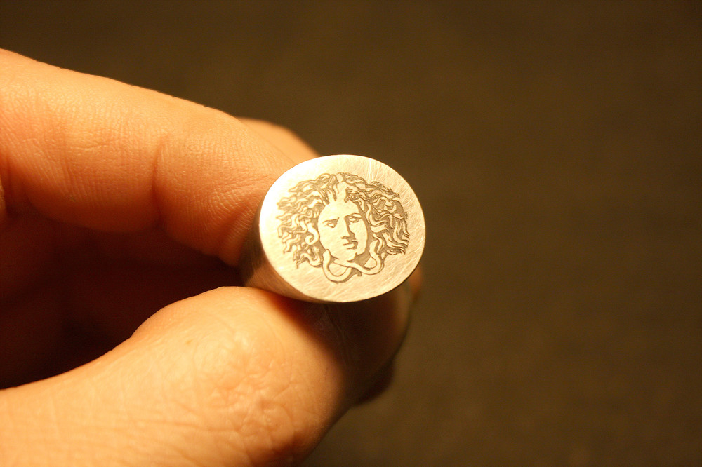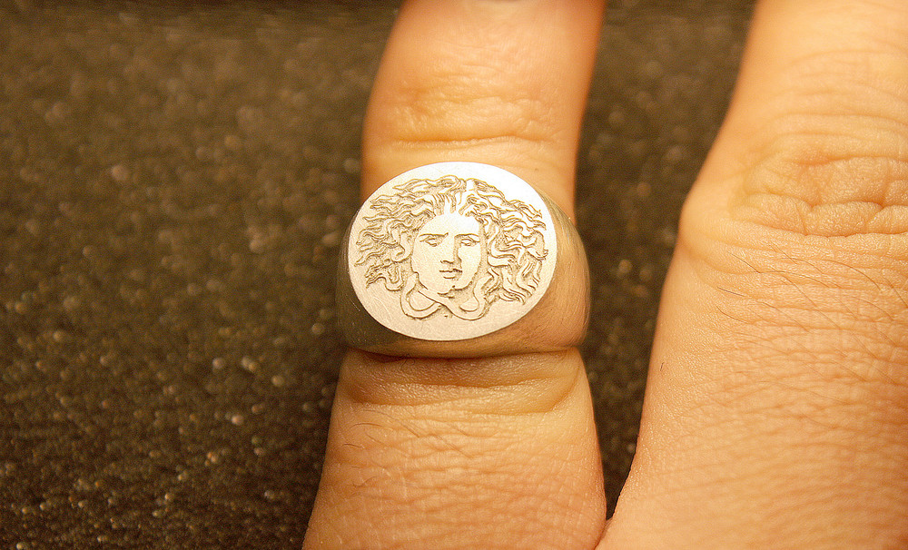 메두사 모양이 레이저로 정교하게 각인됩니다.