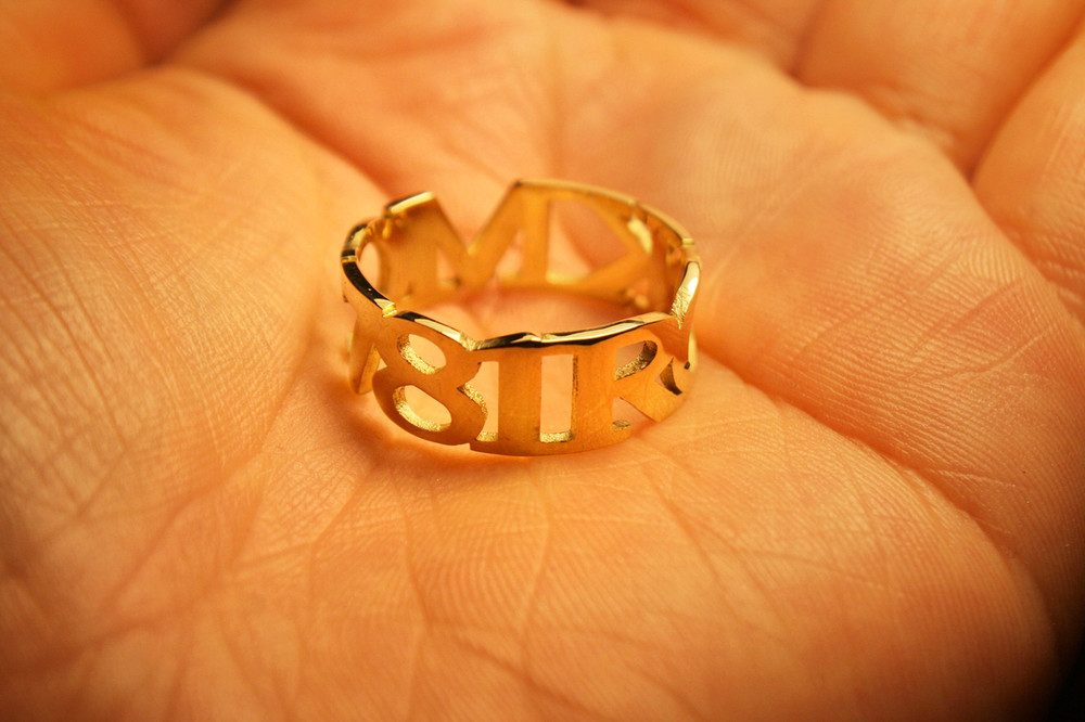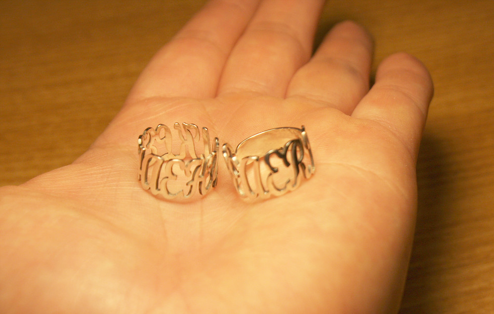 반지 전체가 영문으로 둘러지는 이니셜반지입니다.