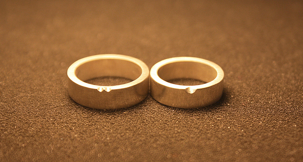 커플 반지가 서로 만나면 하트가 만들어 집니다.