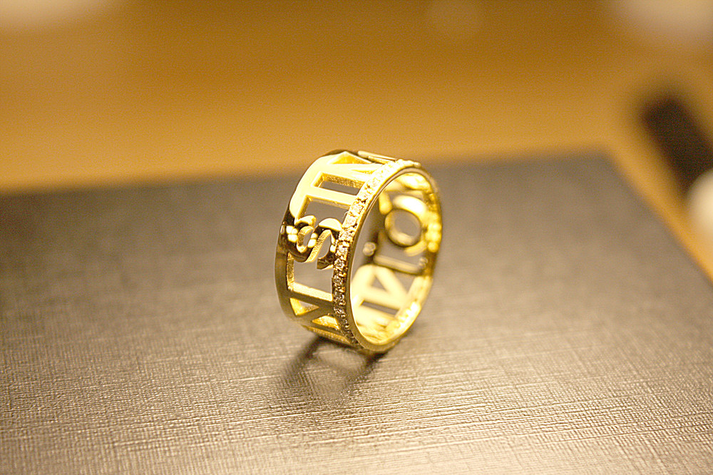 반지 폭은 10mm, 상하단띠는 1.5mm, 골드도금제품사진