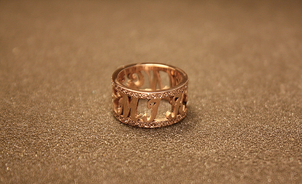 [18k] 이니셜반지 상하띠 큐빅세팅 9.375g