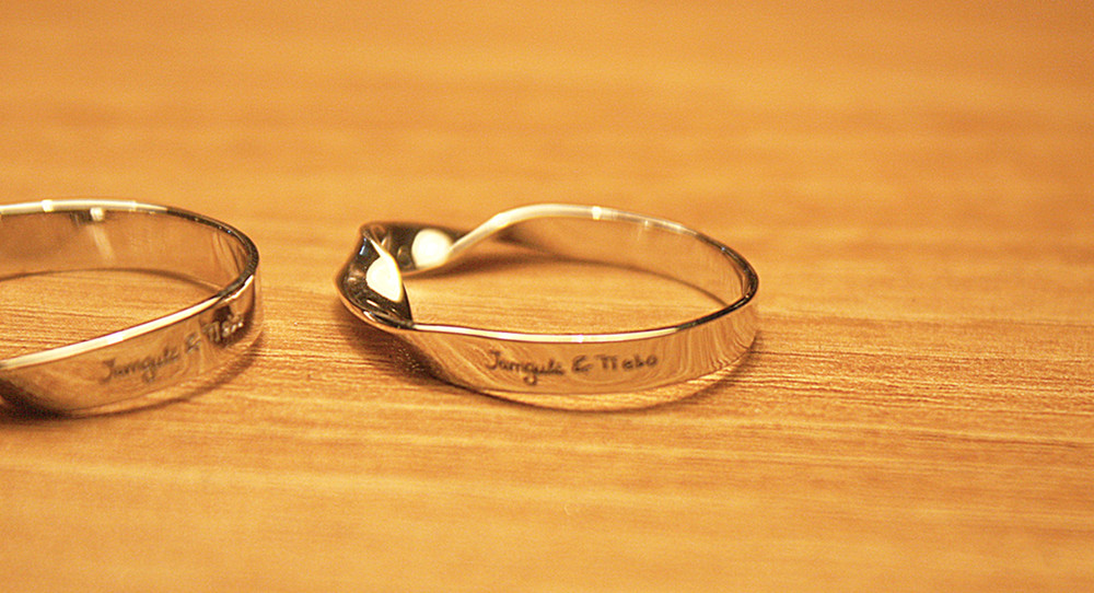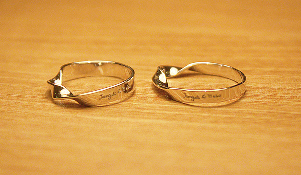 안쪽면 레이저 각인이 가능하며 재료는 실버이며 착색 및 도금 가능합니다.